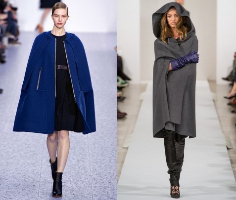 В далекие шестидесятые такое пальто было очень модным, почти у каждой девушки имелось такое в шкафу. Но, как всем нам известно, мода возвращается, и на этот раз с некоторыми изменениями. В настоящее время пальто кейп выглядит следующим образом: это длинное или короткое пальто с прорезями для рук, имеющее свободный покрой. Отсюда следует, что такое пальто лучше совмещать с обтягивающим низом.