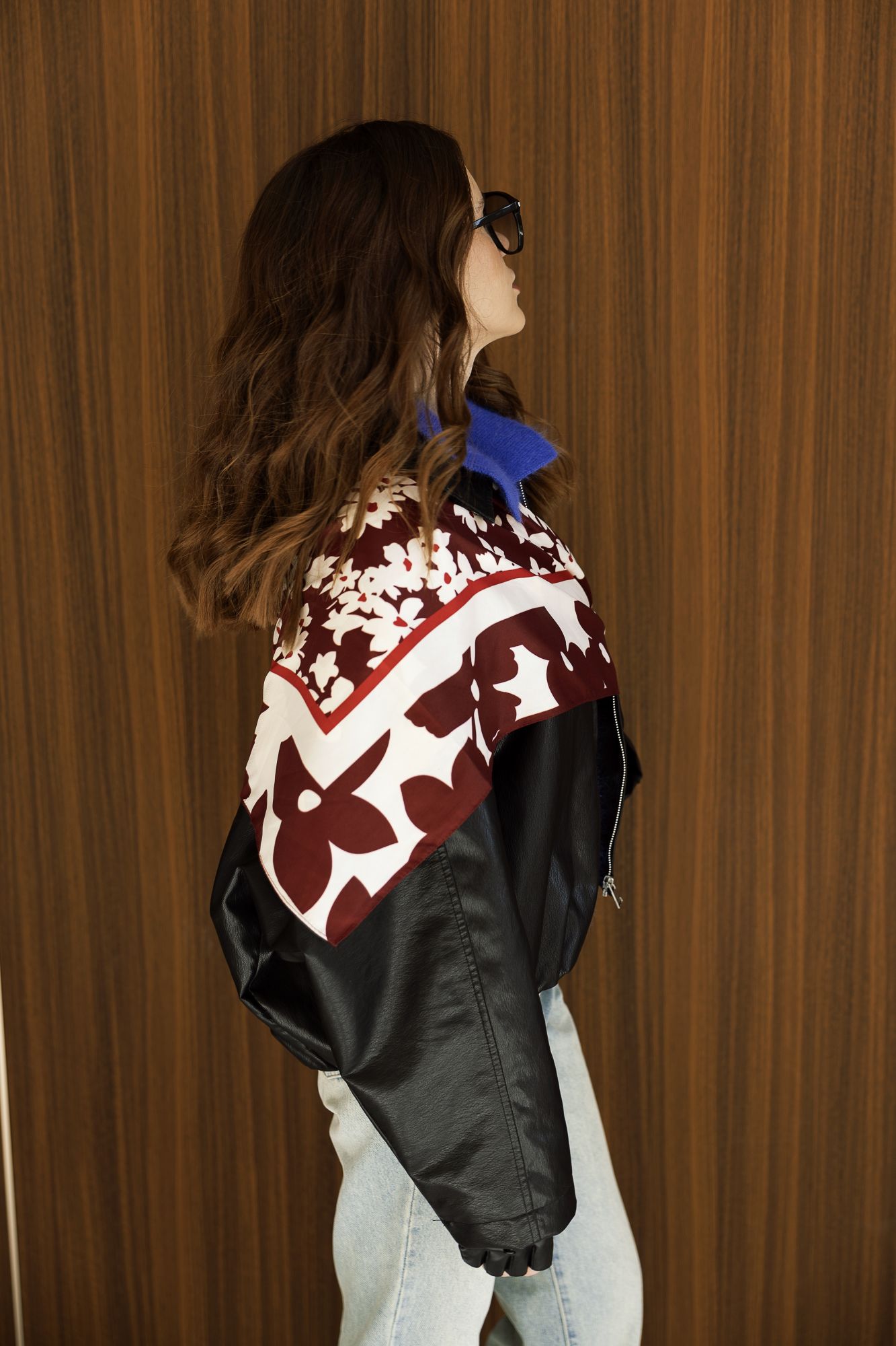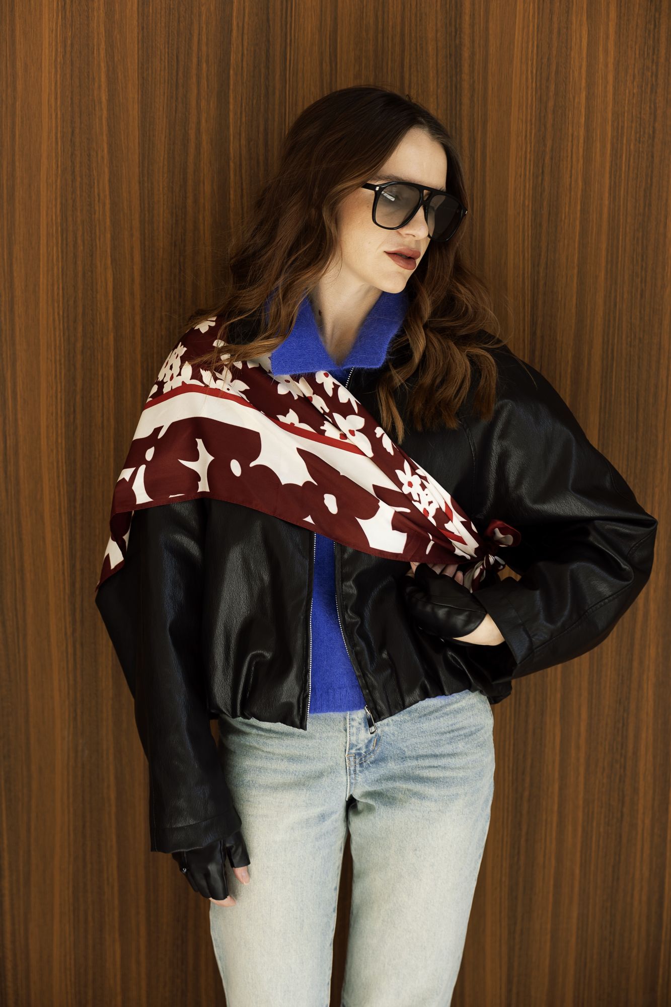 Пусть платок подружится с рукавом. При движении такая конструкция будет красиво играть. Подобный образ можно создать не только с верхней одеждой, но и поэкспериментировать с футболкой, водолазкой, рубашкой.