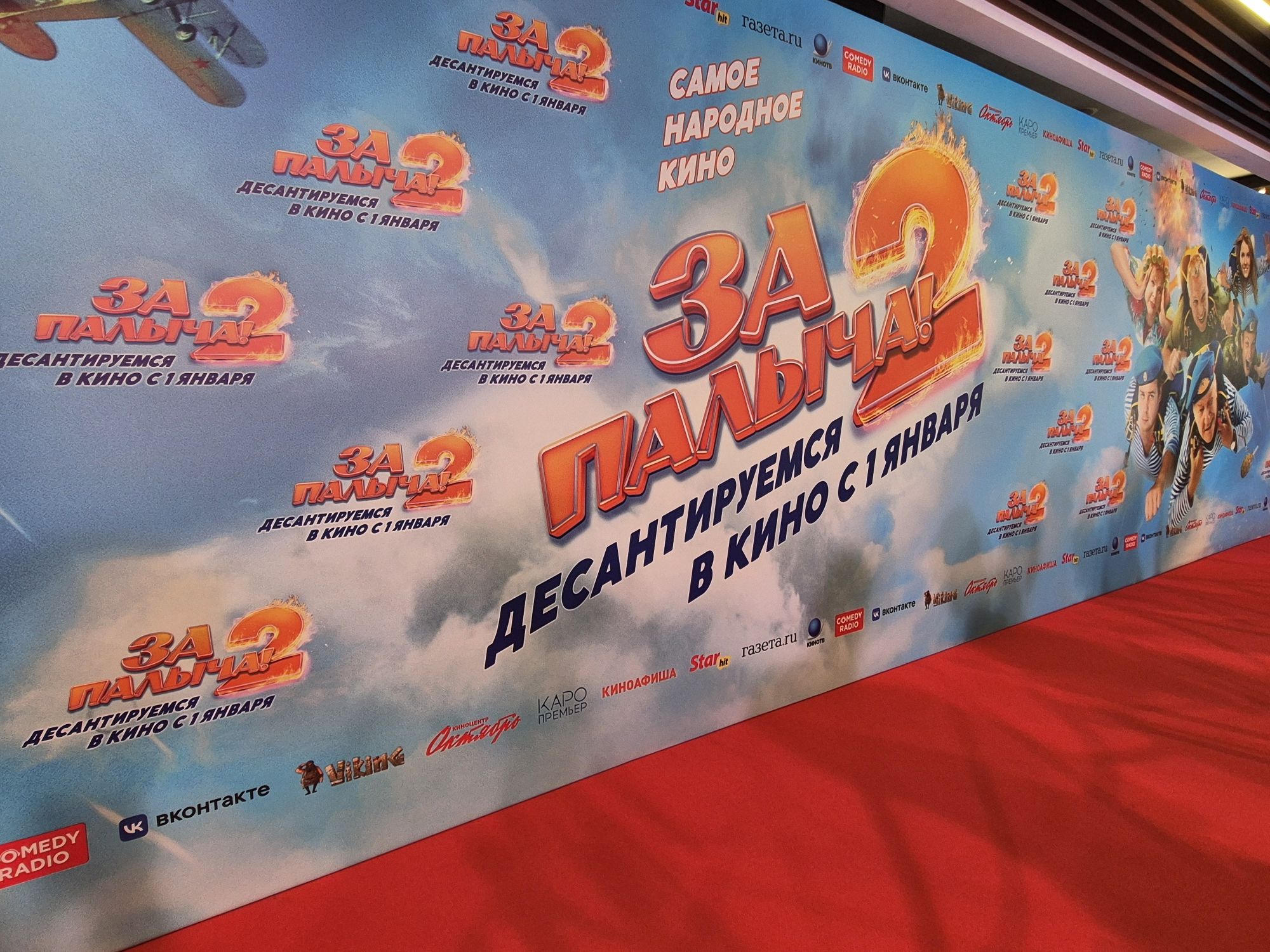 Яркой и теплой предновогодней встречей стала премьера долгожданного сиквела «За Палыча! 2», состоявшаяся 18 декабря в московском кинотеатре «Каро 11 Октябрь».