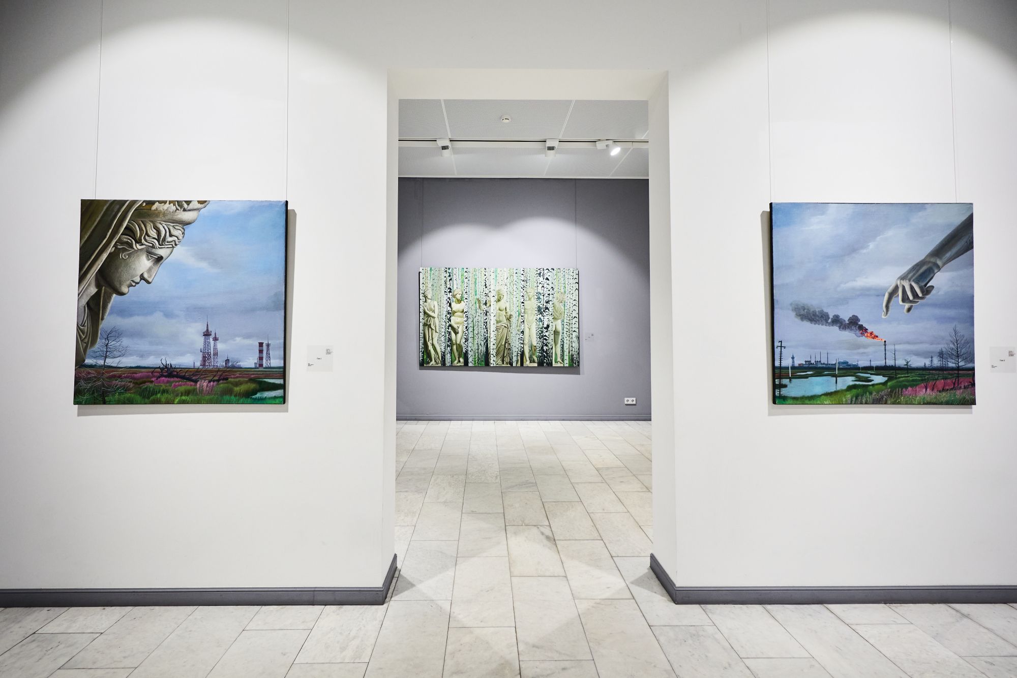 Отдельного внимания заслуживает дуэт промышленных пейзажей, на которых богиня Земли Гея оценивает и простирает длань к газовому месторождению – Богатству Земли Русской.